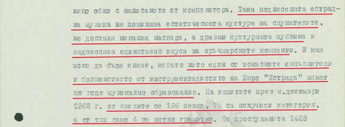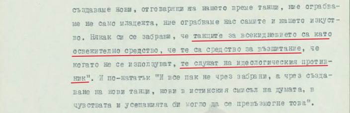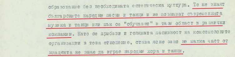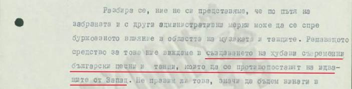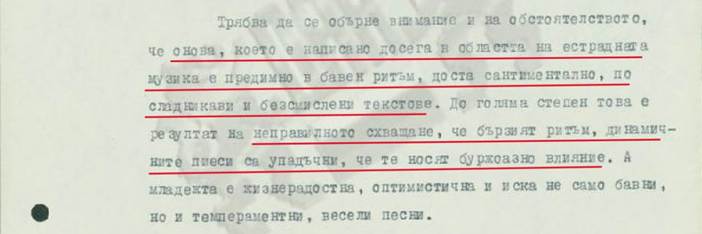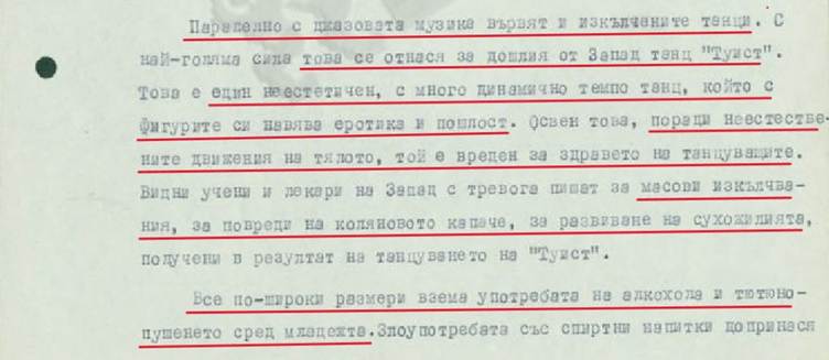 „Една от основните причини за това е безкритичният внос на чужди естрадни мелодии и танци, които вместо да възпитават, развращават.