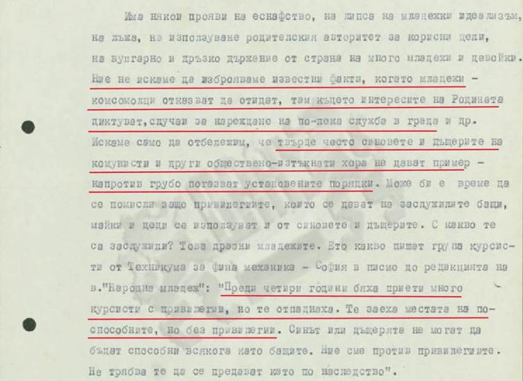 …твърде често синовете и дъщерите на комунисти и други обществено-изтъкнати хора не дават пример – напротив грубо погазват установените порядки.