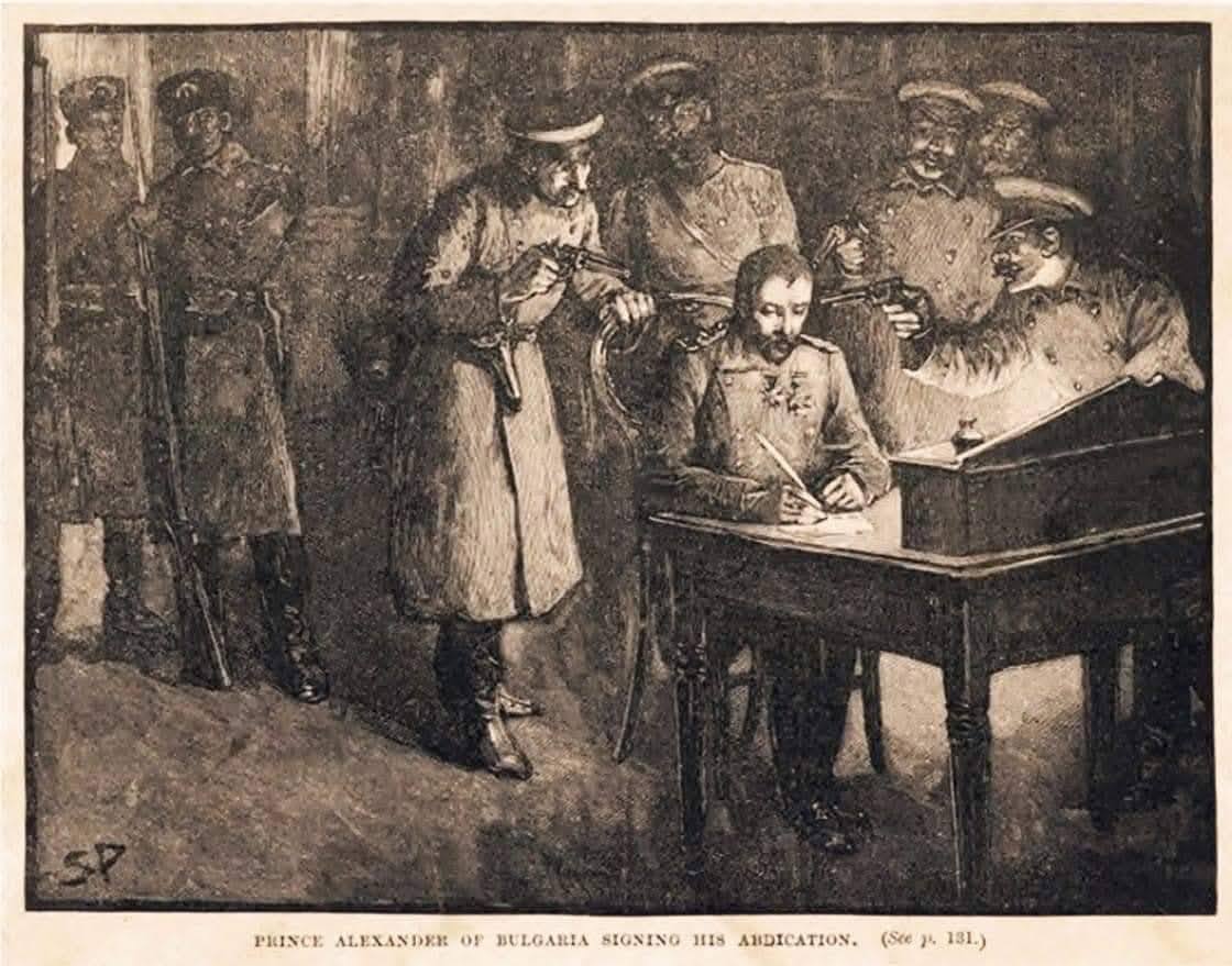 В 2 часа сутринта на 9 август 1886 г., русофилски настроените офицери, с подкрепата на руската дипломация, извършват преврат. Дворецът е обсаден от части на Струмски пехотен полк и юнкерите от Военното училище. Княз Александър I Батенберг, под натиск е принуден да абдикира, както и да подпише следната прокламация към българския народ: