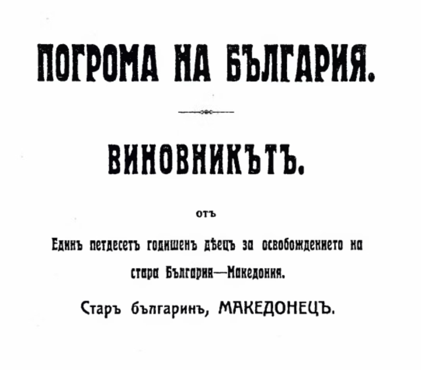 Анонимната брошура под заглавие: „Виновниците за днешните дипломатически неуспехи на България“, потвърждава тая истина, че погрома на България е извършен от руската дипломация чрез посредството на своите послушни оръдия, слепите русофили от кабинета: Гешов-Данев. …